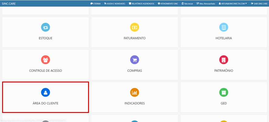 0.1 Entrar no módulo: Após se logar no sistema, desça a tela até o módulo “ÁREA DO CLIENTE”.