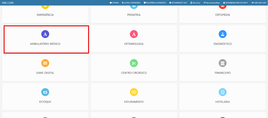 - Após se logar no sistema, vá até o módulo Ambulatório Médico.